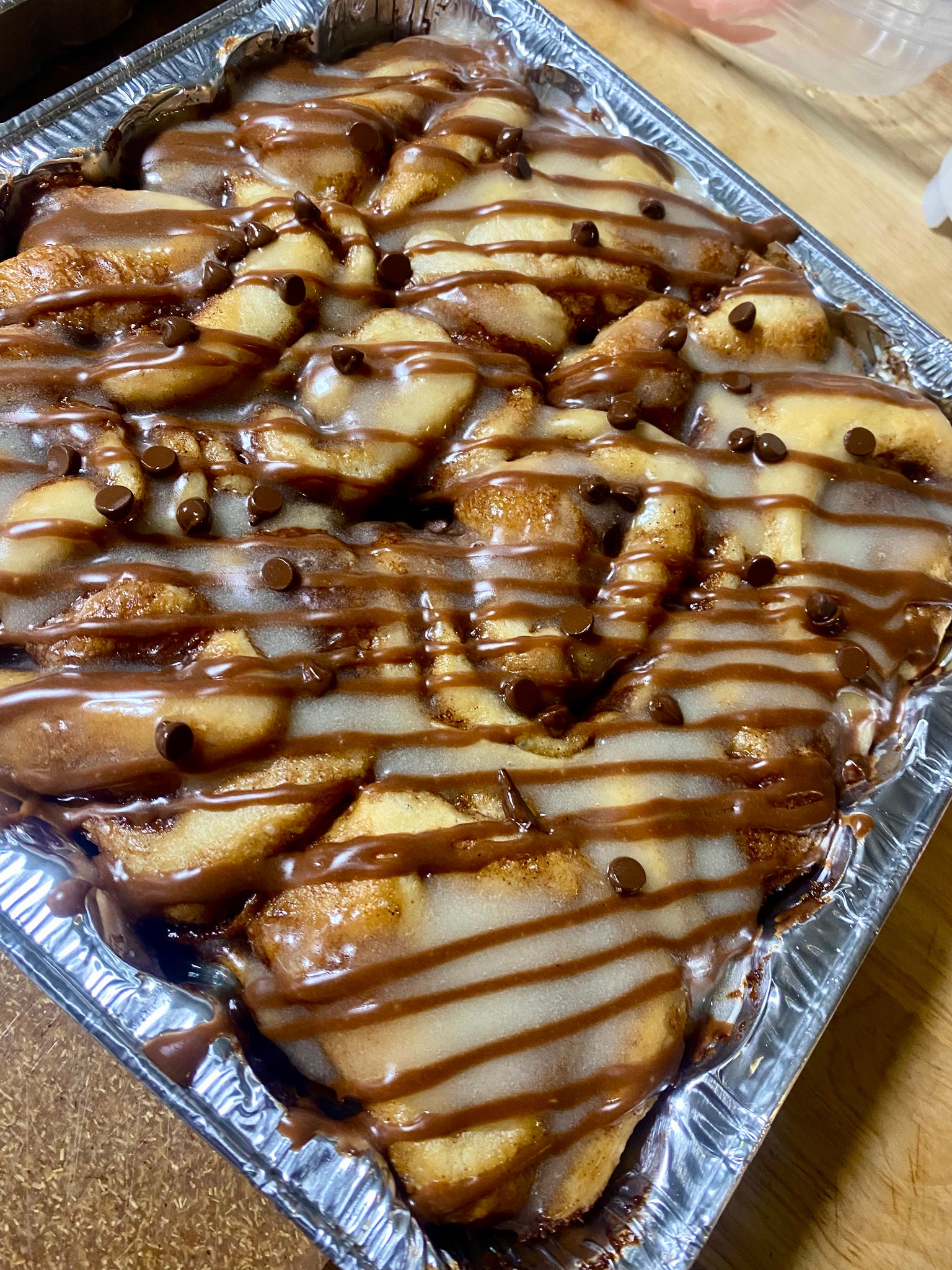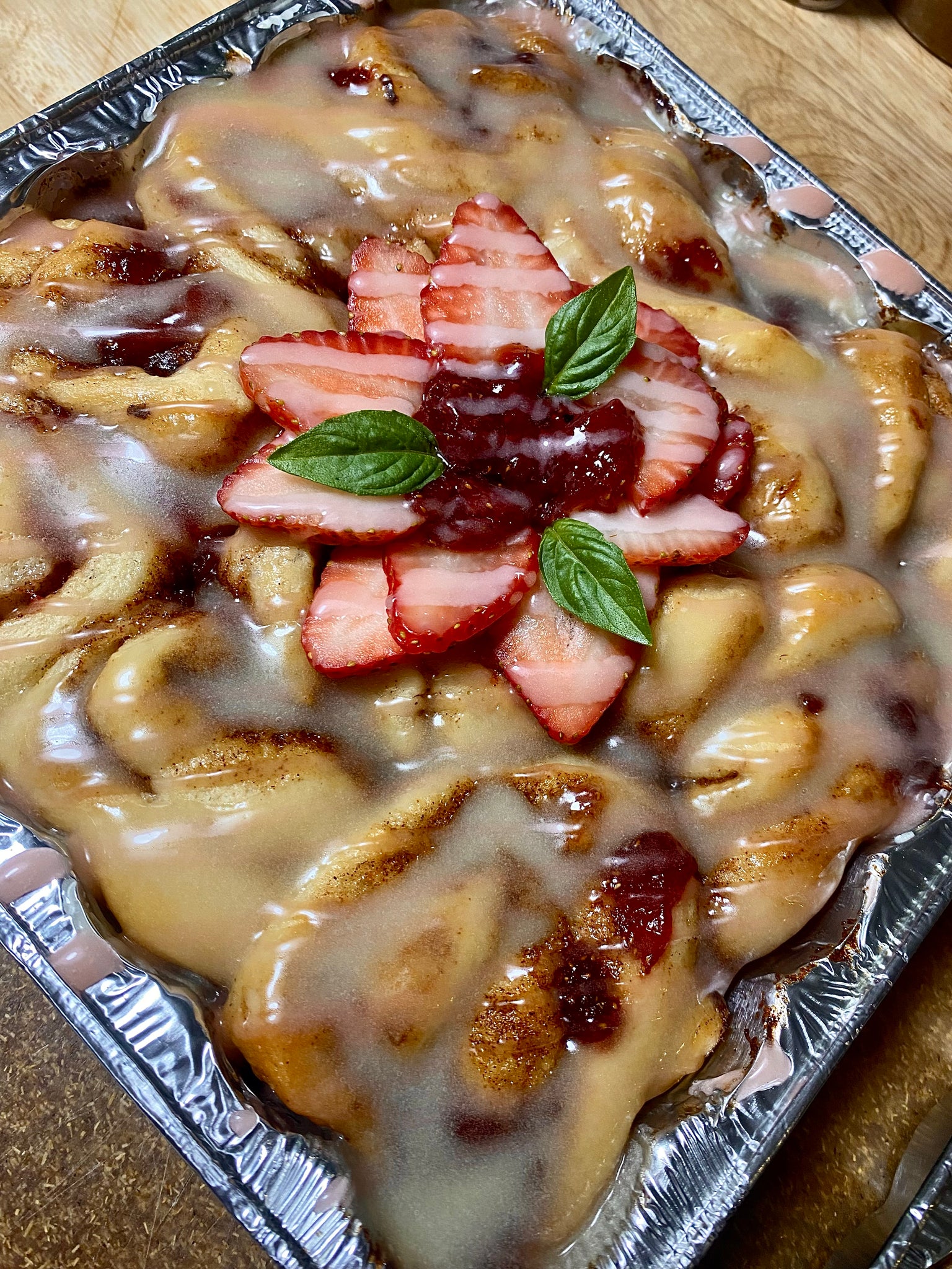 Made from scratch, soft and delicious cinnamon rolls with vegan cream cheese icing. Comes with about 9-12 rolls per pan! Available as
